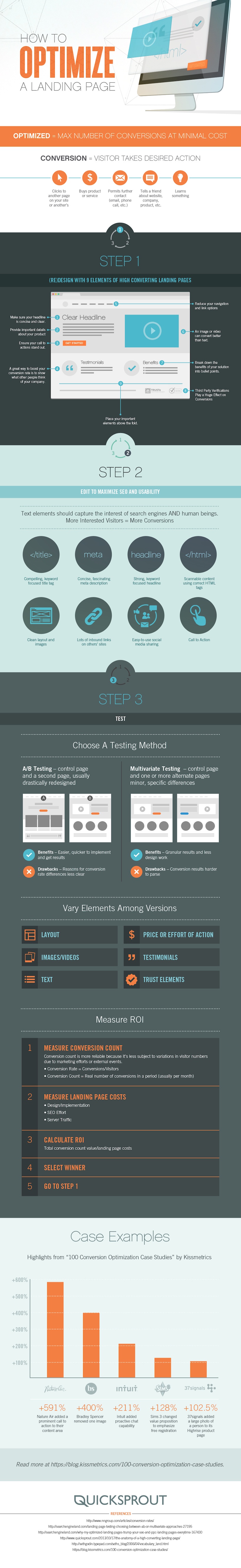 If you'd like to take a snapshot of how you can optimise your landing pages, the following is a neat takeaway (infographic) from QuickSprout;