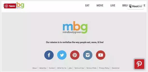 The website MindBodyGreen, as shown in the example above, places the Pinterest button in prominent ‘eye catching’ places, such as the header, footer, sidebar, etc. This helps them divert their website visitors to their Pinterest page and build new followers.