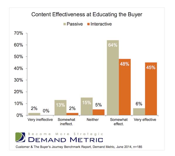 Below, a conversion study by Demand Metric indicates when examining “very effective” content, interactive is way ahead of passive content for ‘educating the buyer’.