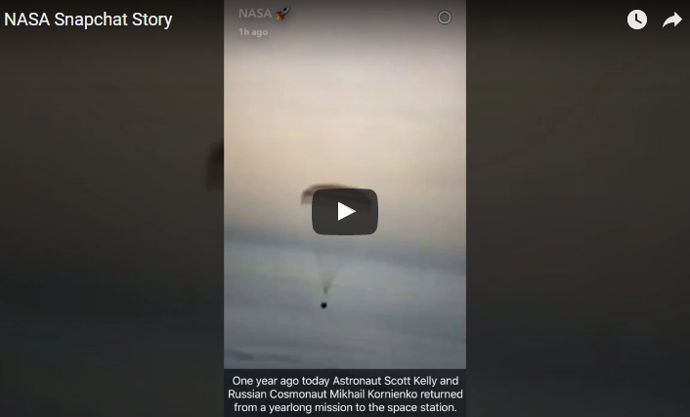 In the SnapChat video story above, NASA captures the story of Astronaut Scott Kelly, who after his year-long space mission returns home. The story which is exceptionally crafted and narrated with images, texts and emojis, further engages the audiences by going into an ongoing research about the possibility of living life on Mars.
