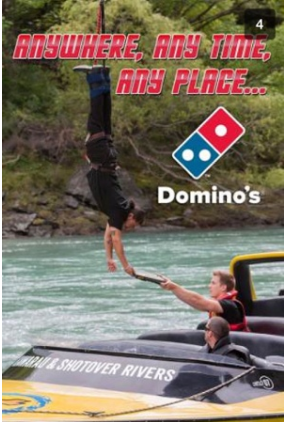 The Domino’s Australia was running Snapchat stories to align with campaigns they did on other social media platforms. An example below is a snapchat story of their campaign with the slogan ‘Anywhere, anytime, anyplace…”, where the picture shows a delivery person hanging from a helicopter to deliver pizza to its customer cruising on a boat: